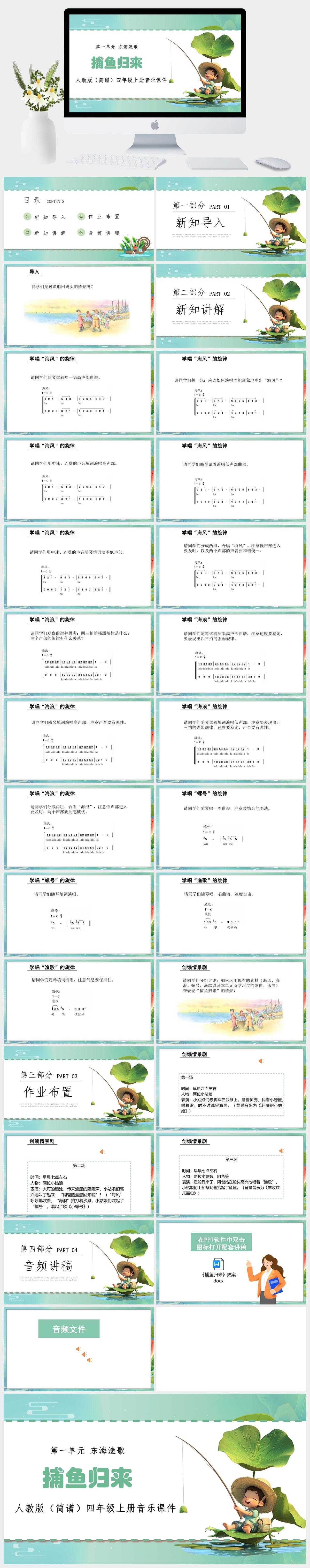 HKM901-人教版(简谱)四年级上册音乐第一单元东海渔歌《捕鱼归来》课件PPT模板