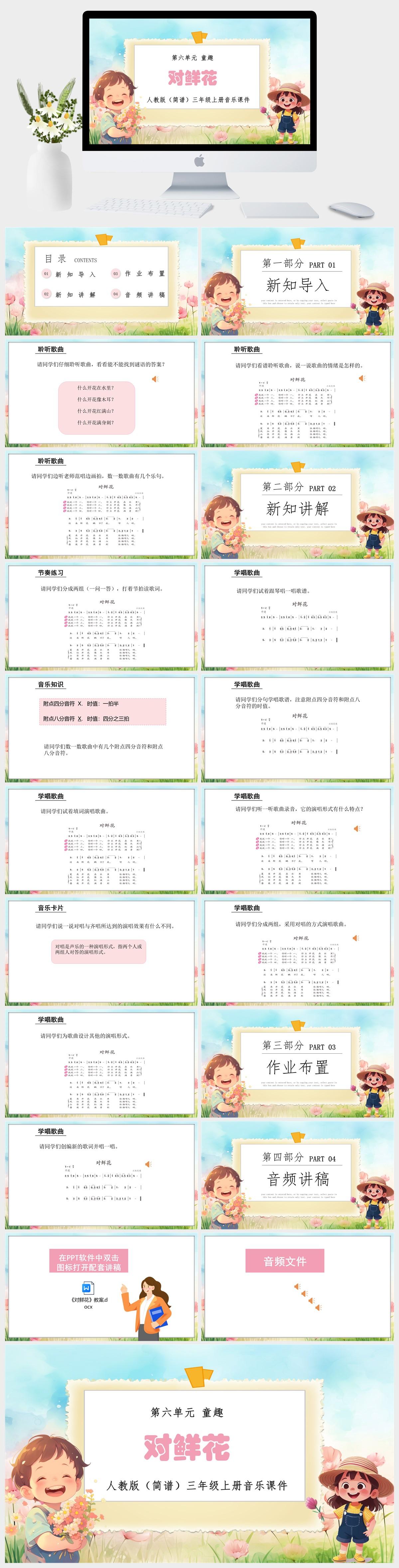 HKM912-人教版(简谱)三年级上册音乐第六单元童趣《对鲜花》课件PPT模板