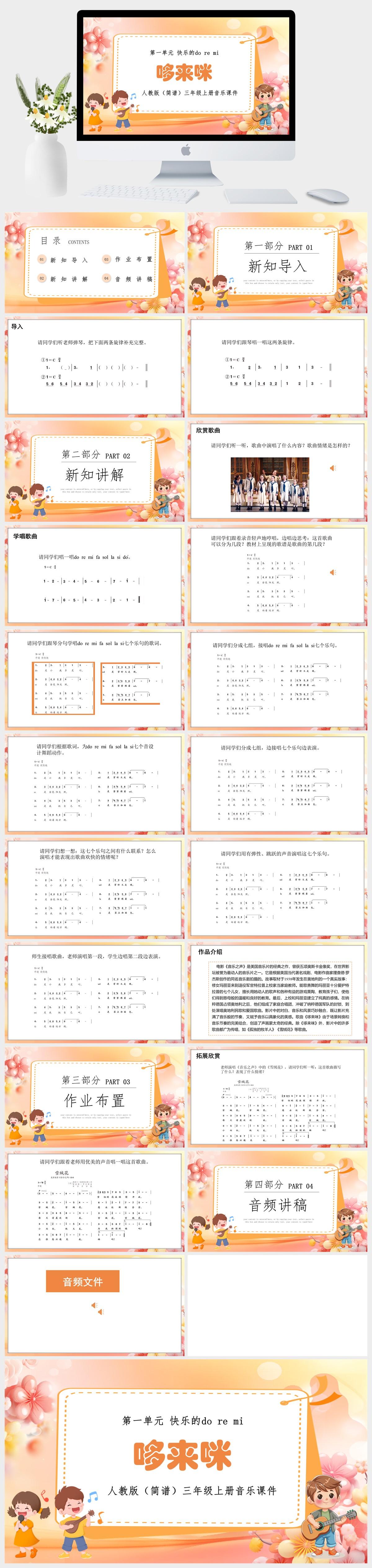 HKM953-人教版(简谱)三年级上册音乐第一单元快乐的do re mi《哆来咪》课件PPT模板