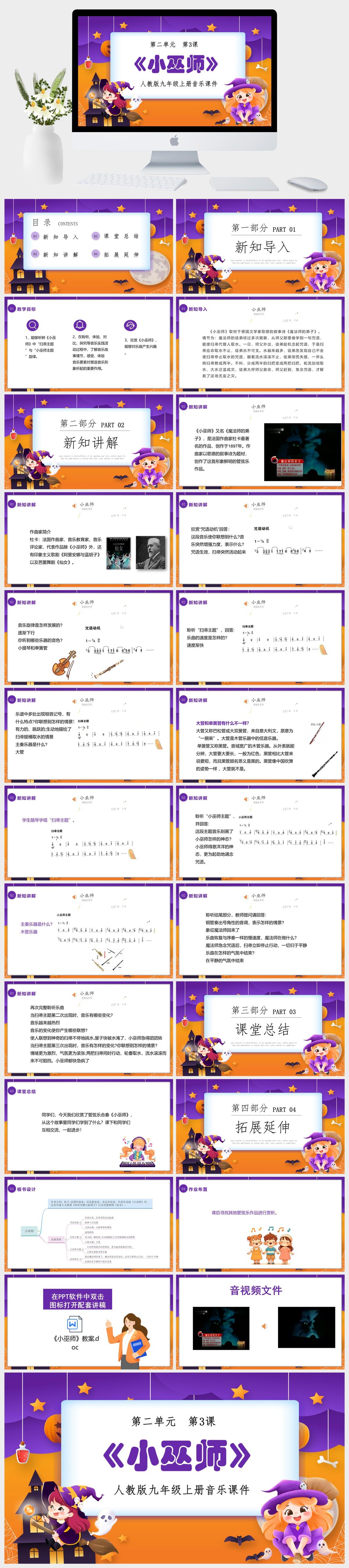 HKM1017-人教版九年级上册音乐第二单元第3课《小巫师》课件PPT模板