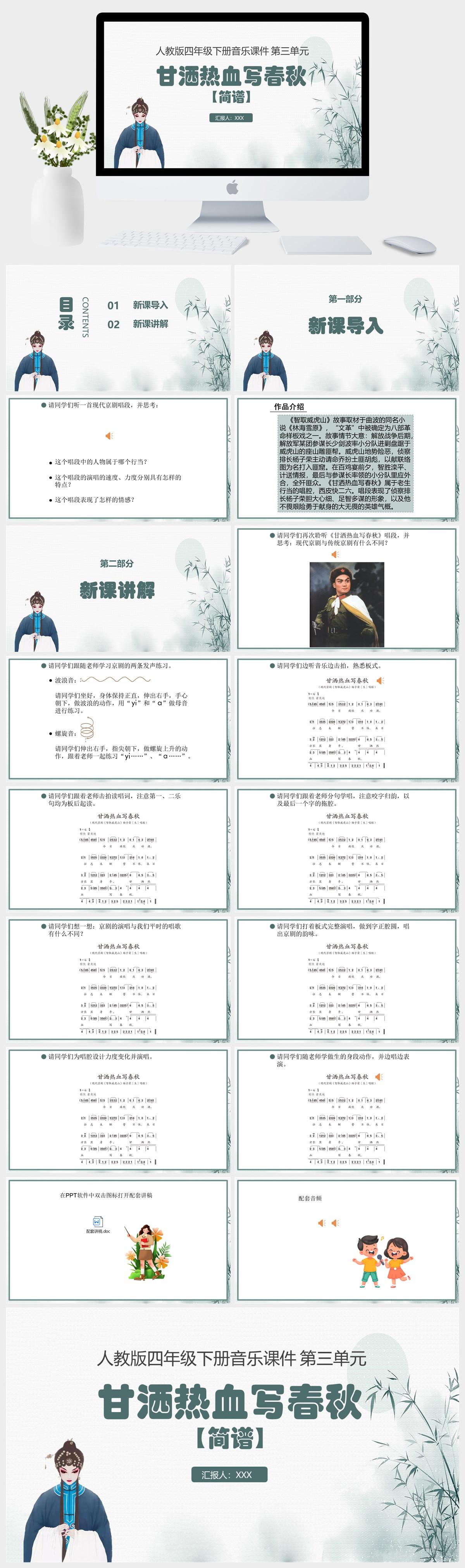 HKM1112-人教版四年级下册音乐第三单元 甘洒热血写春秋(简谱)课件PPT模板