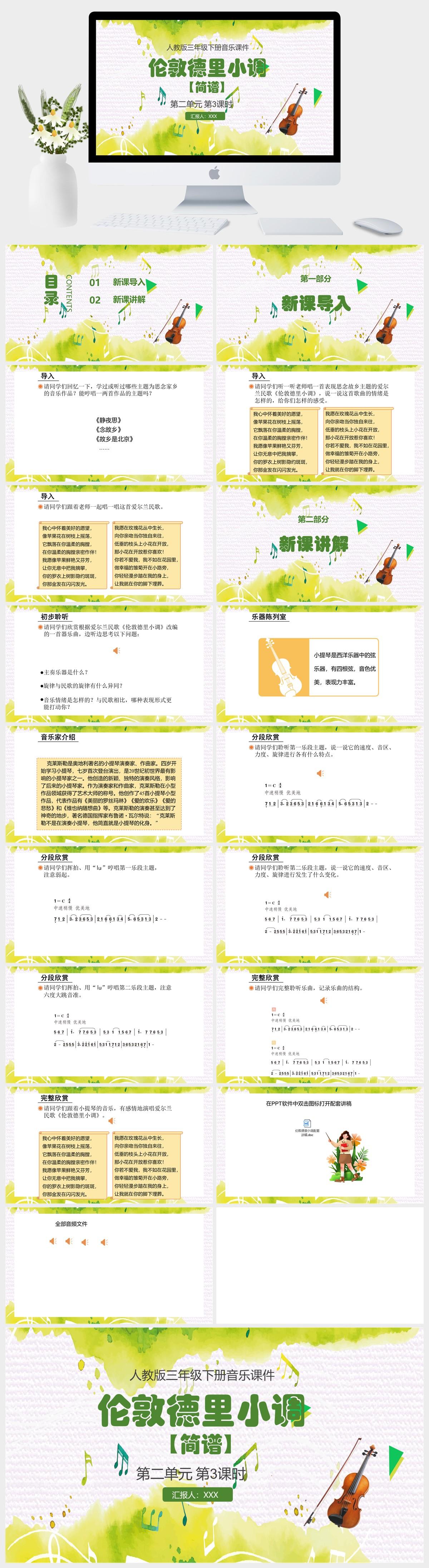 HKM1182-人教版三年级下册音乐第二单元 伦敦德里小调(简谱)课件PPT模板
