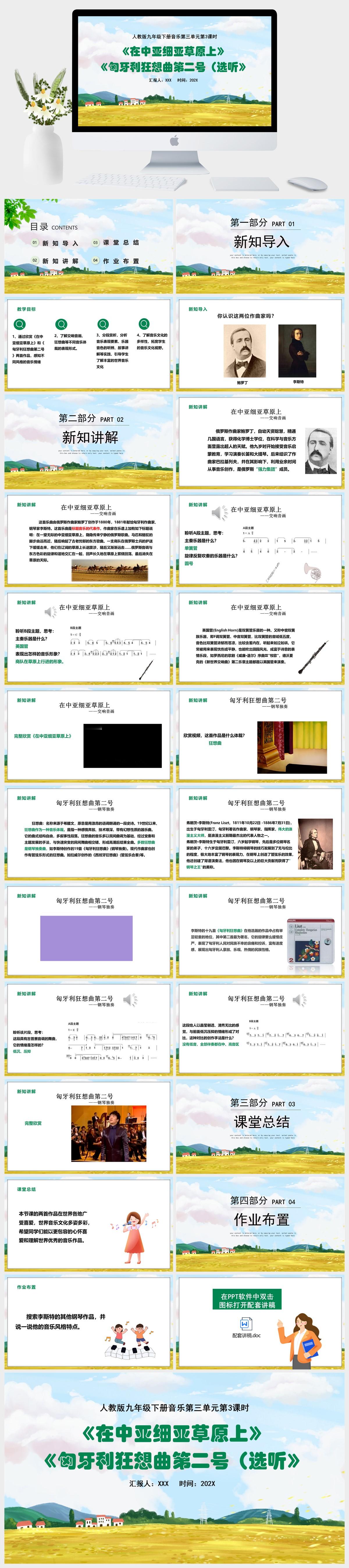 HKM1191-人教版九年级下册第三单元第3课时《在中亚细亚草原上》《匈牙利狂想曲第二号》(选听)课件PPT模板