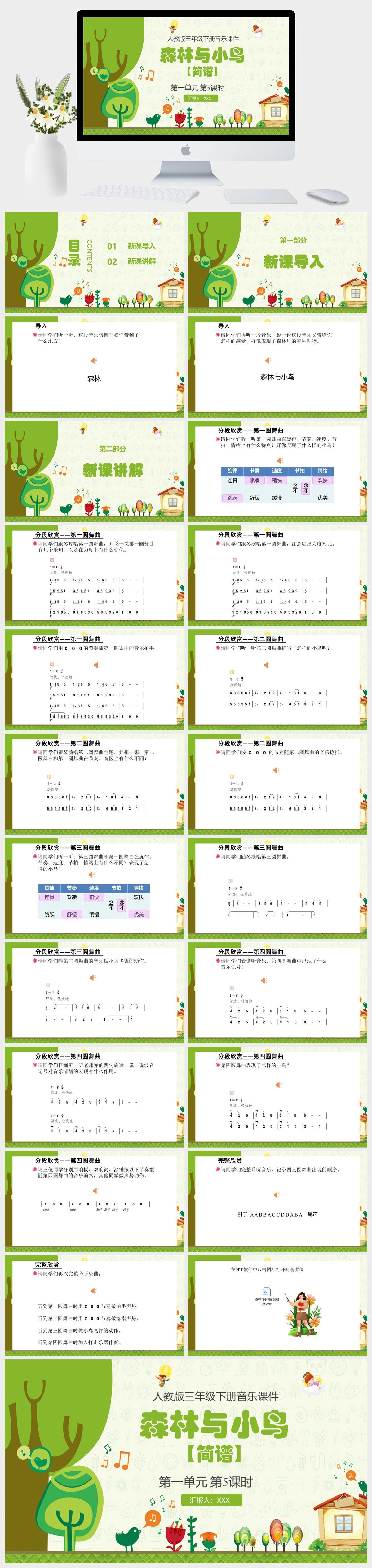HKM1193-人教版三年级下册音乐第一单元 森林与小鸟(简谱)课件PPT模板