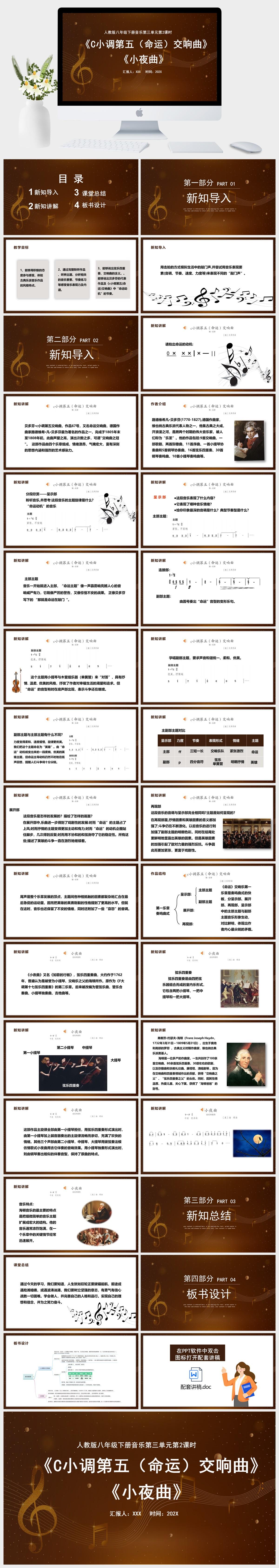 HKM1237-人教版八年级下册音乐第三元第2课时《小夜曲》《c小调第五(命运)交响曲》第一乐章课件PPT模板