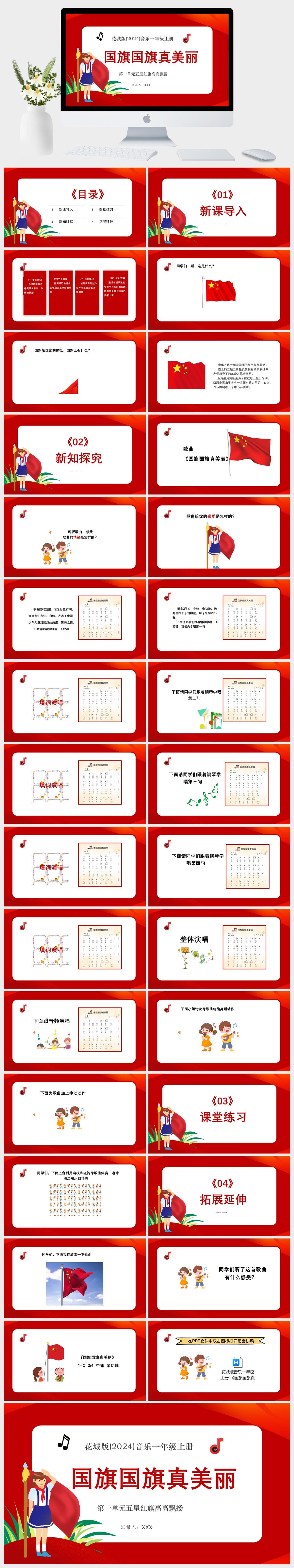 HKM1304-花城版(2024)音乐一年级上册第一单元五星红旗高高飘扬 国旗国旗真美丽PPT模板