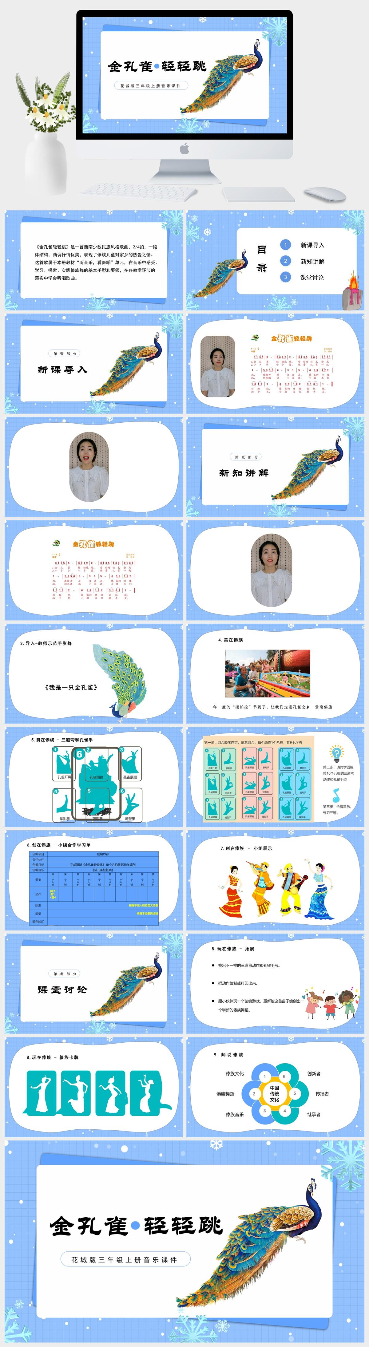 HKM1603-花城版三年级上册音乐课件金孔雀 轻轻跳PPT模板