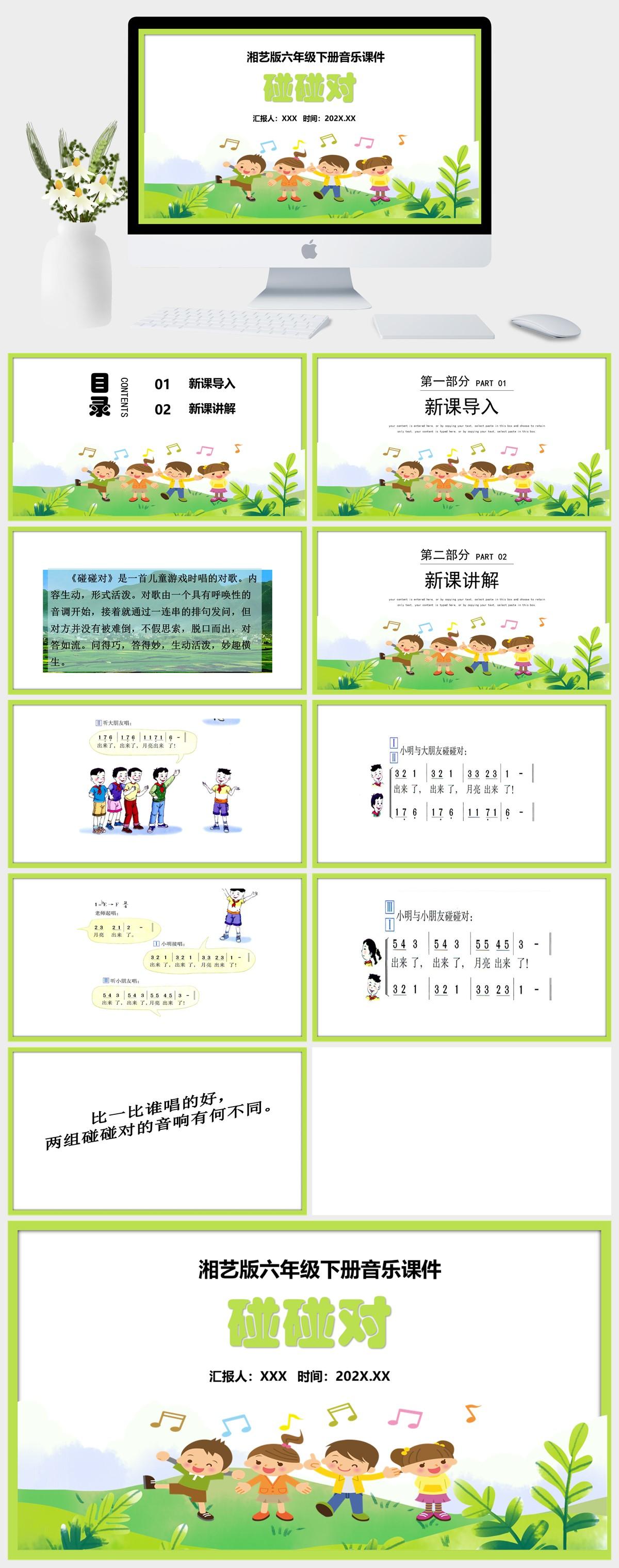 HKM2035-湘艺版六年级下册音乐《碰碰对》课件PPT模板