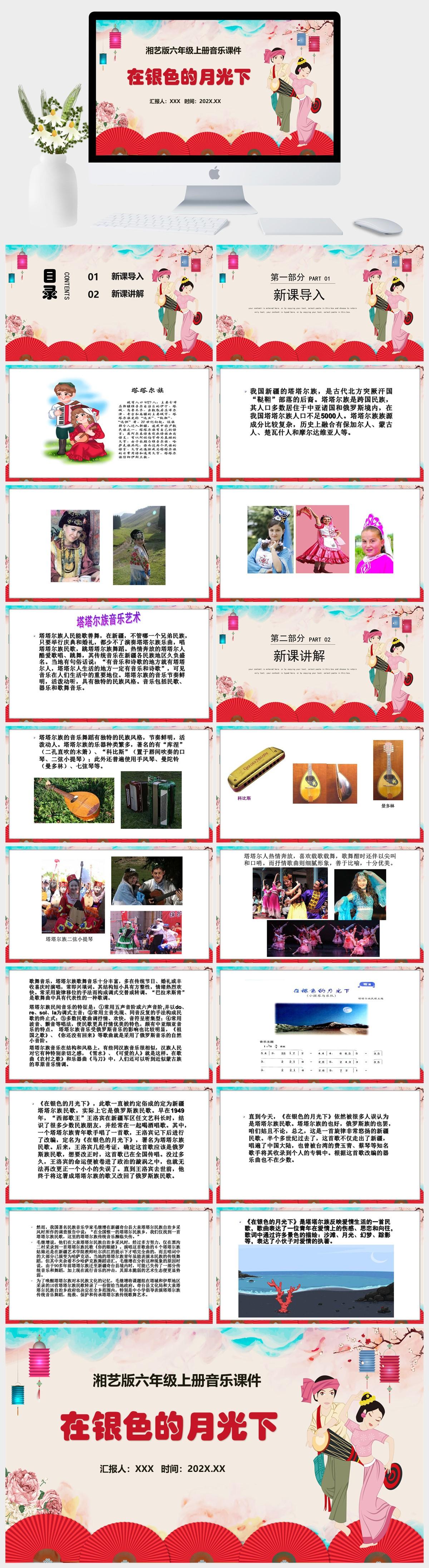 HKM2072-湘艺版六年级上册音乐《在银色的月光下》课件PPT模板