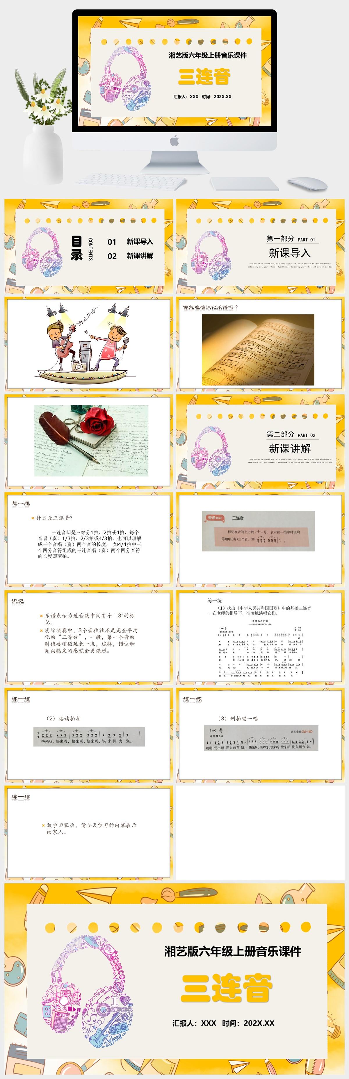 HKM2082-湘艺版六年级上册音乐《三连音》课件PPT模板