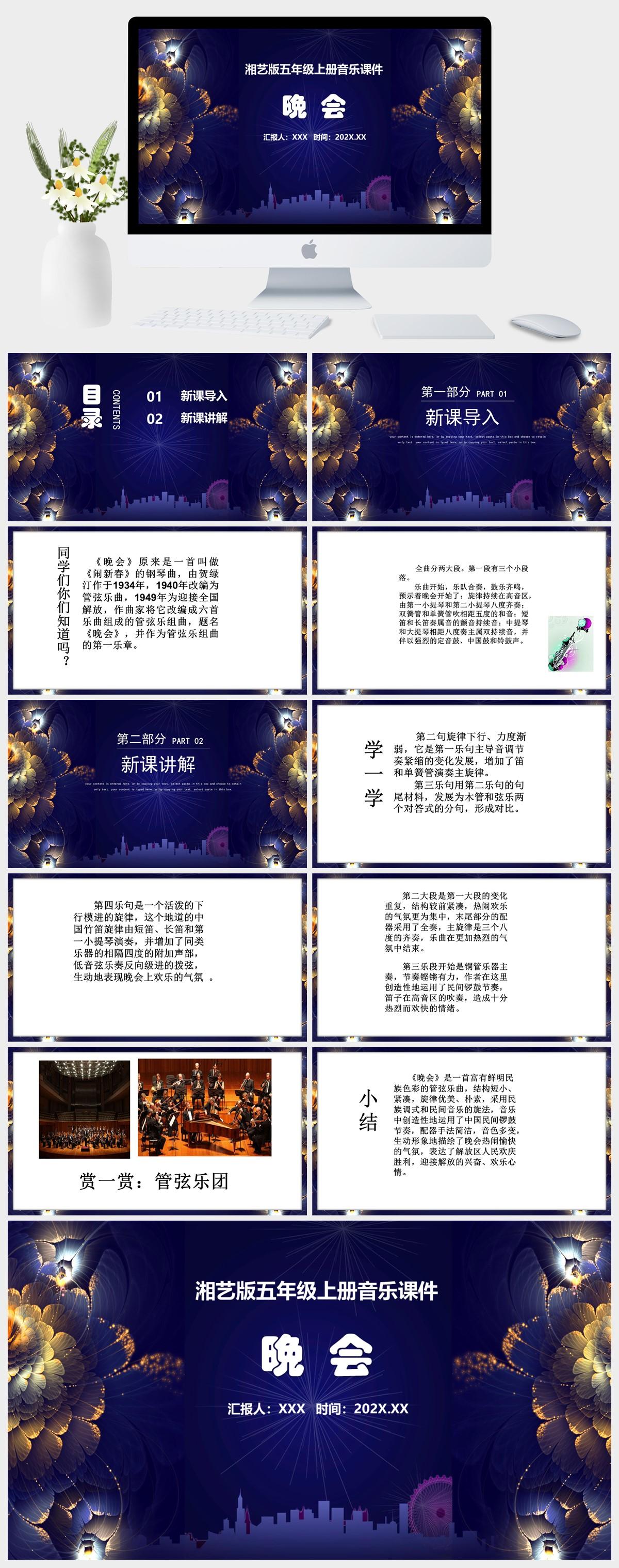 HKM2179-湘艺版五年级上册音乐《晚会》课件PPT模板