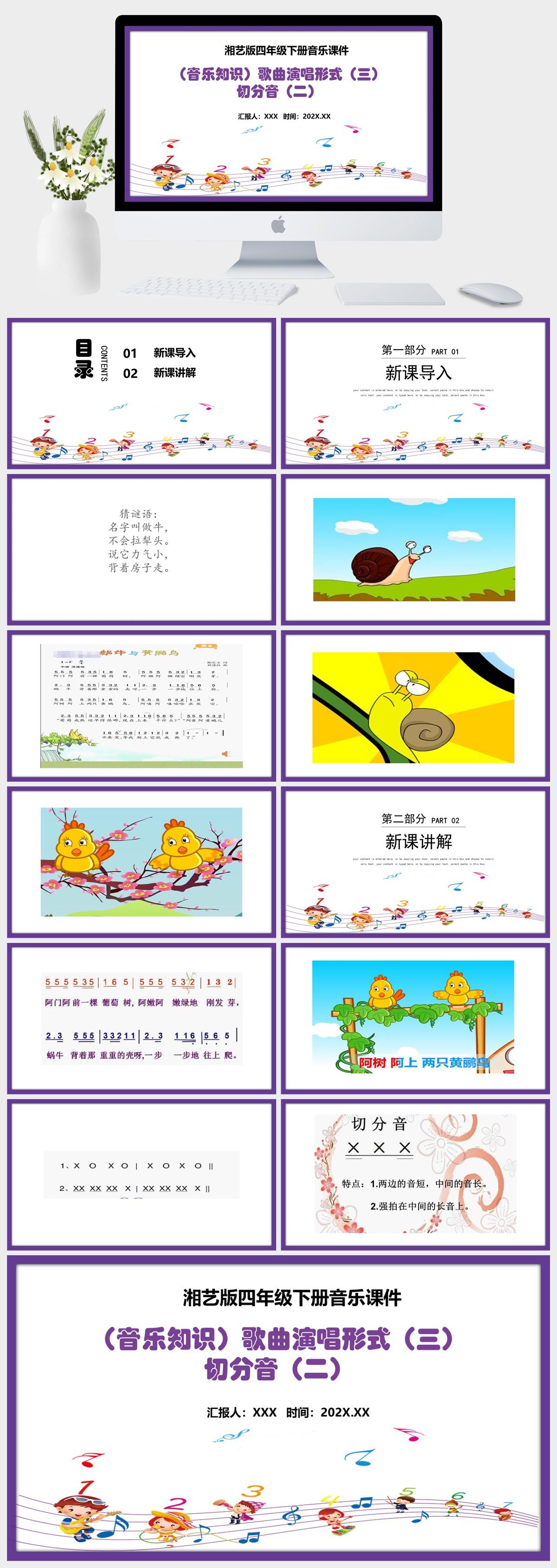 HKM2216-湘艺版四年级下册音乐《音乐知识)歌曲演唱形式(三) 切分音(二》课件PPT模板