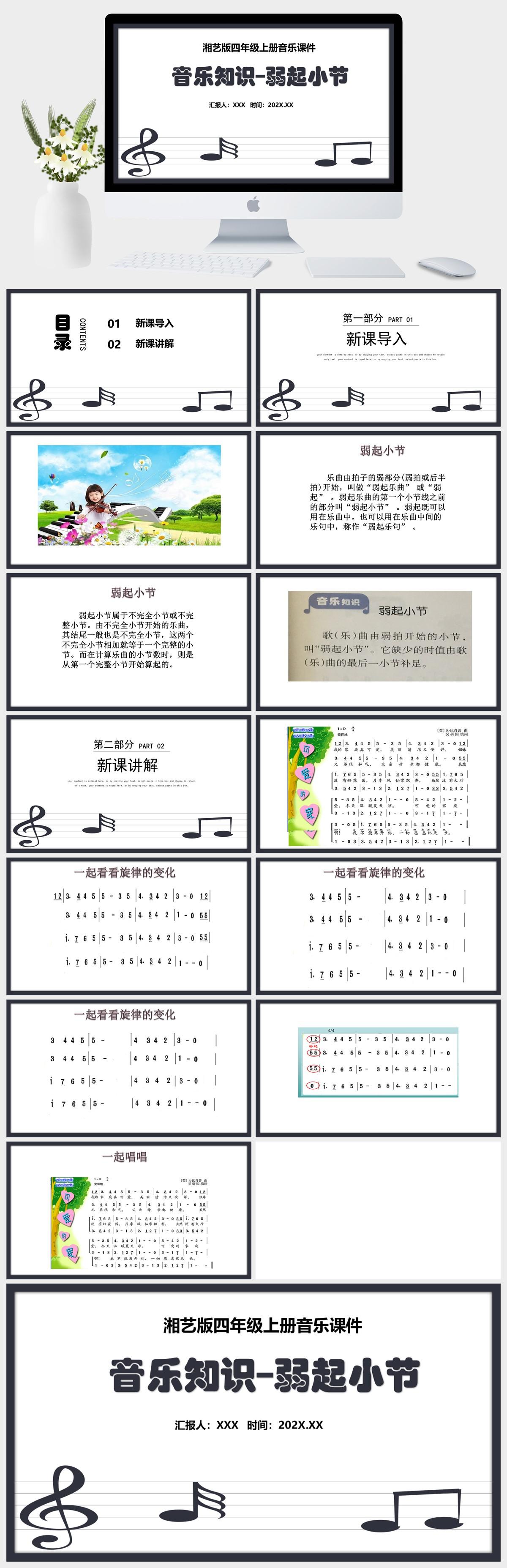 HKM2240-湘艺版四年级上册音乐《音乐知识–弱起小节》课件PPT模板
