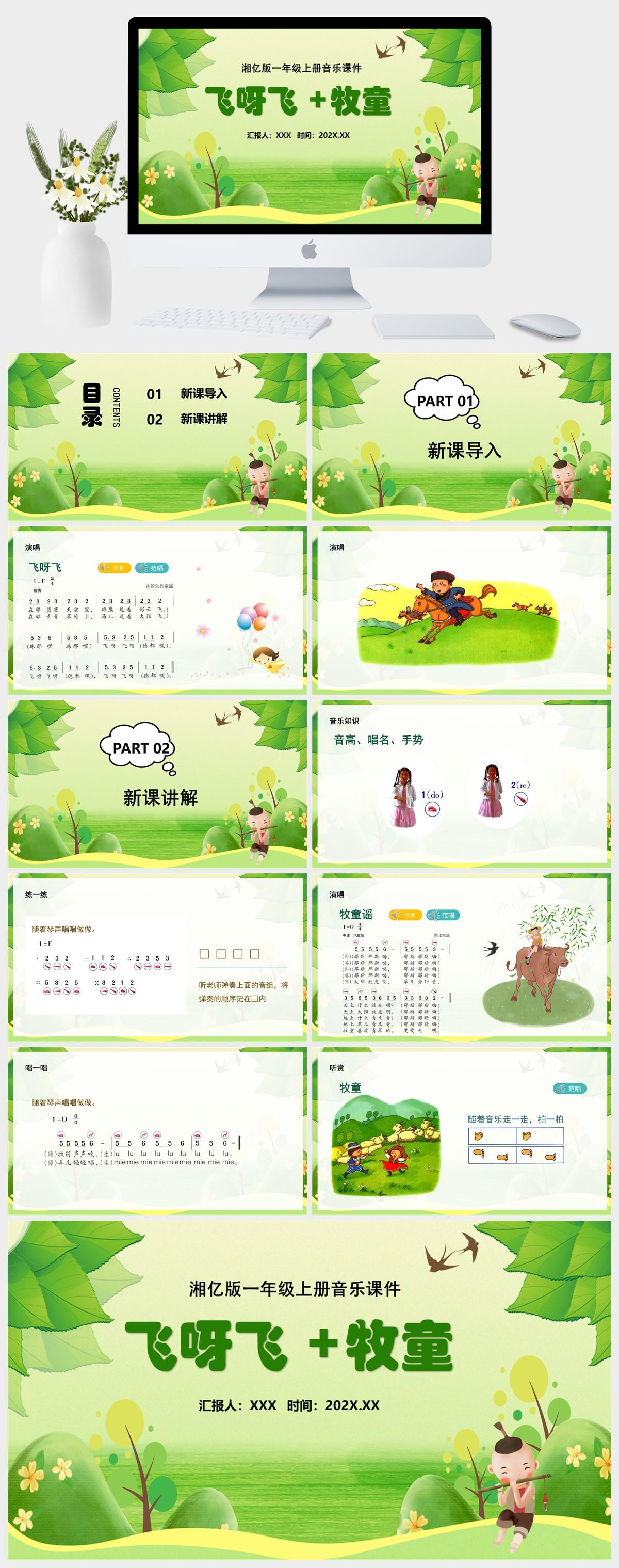 HKM2422-湘亿版一年级上册音乐《飞呀飞–牧童》课件PPT模板