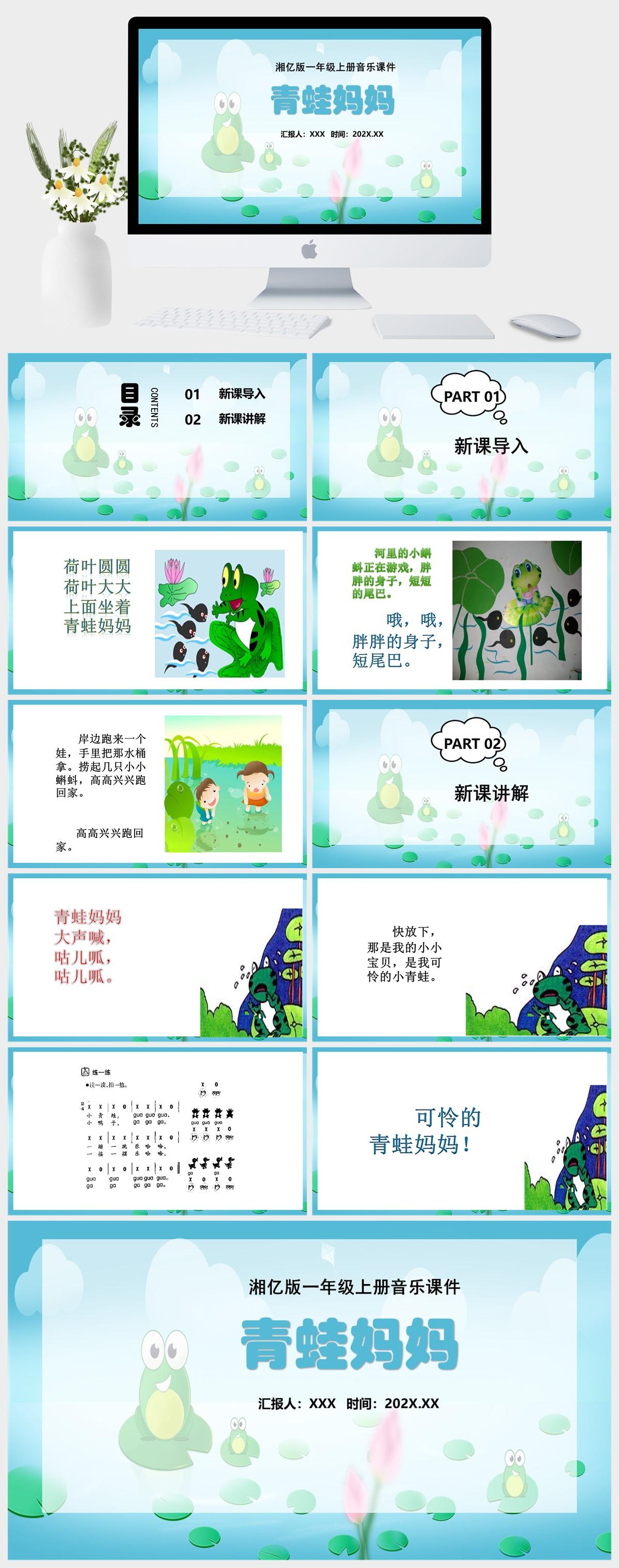 HKM2452-湘亿版一年级上册音乐《青蛙妈妈》课件PPT模板