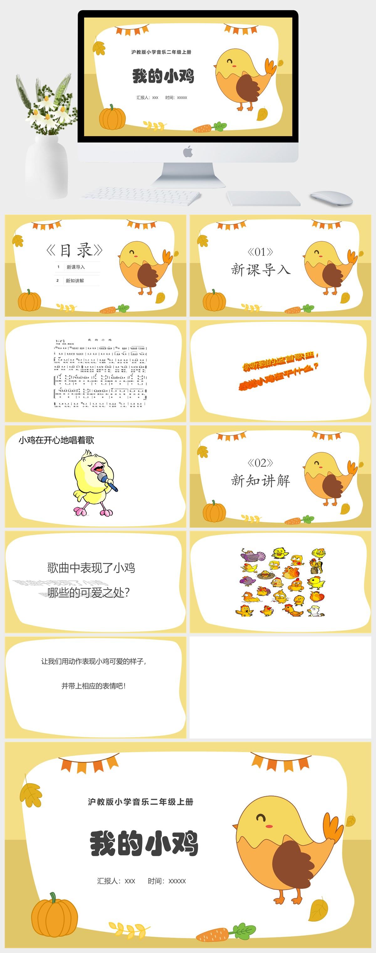 HKM2722-沪教版小学音乐二年级我的小鸡PPT模板