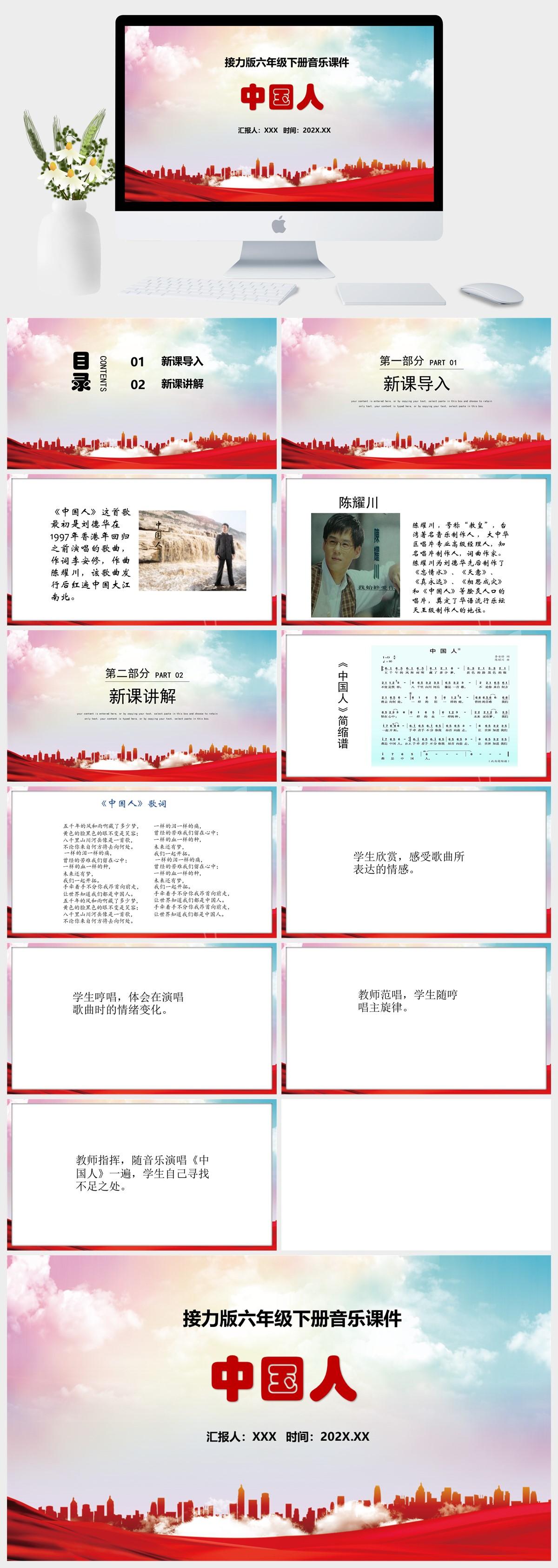 HKM2801-接力版六年级下册音乐《中国人》课件PPT模板