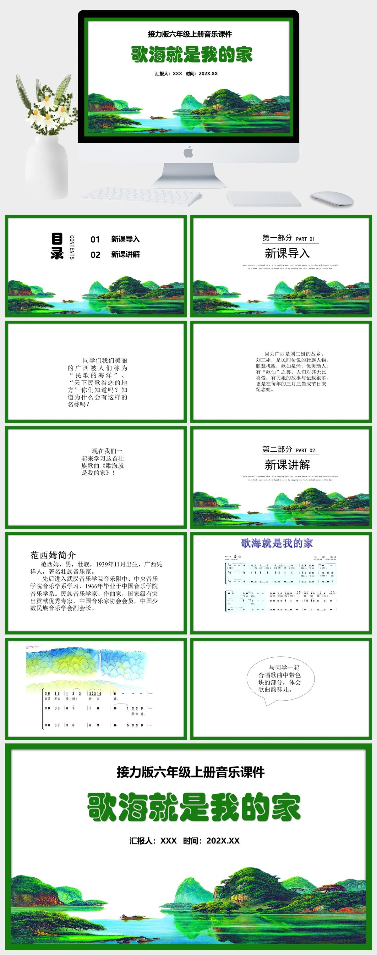 HKM2814-接力版六年级上册音乐《歌海就是我的家》课件PPT模板)