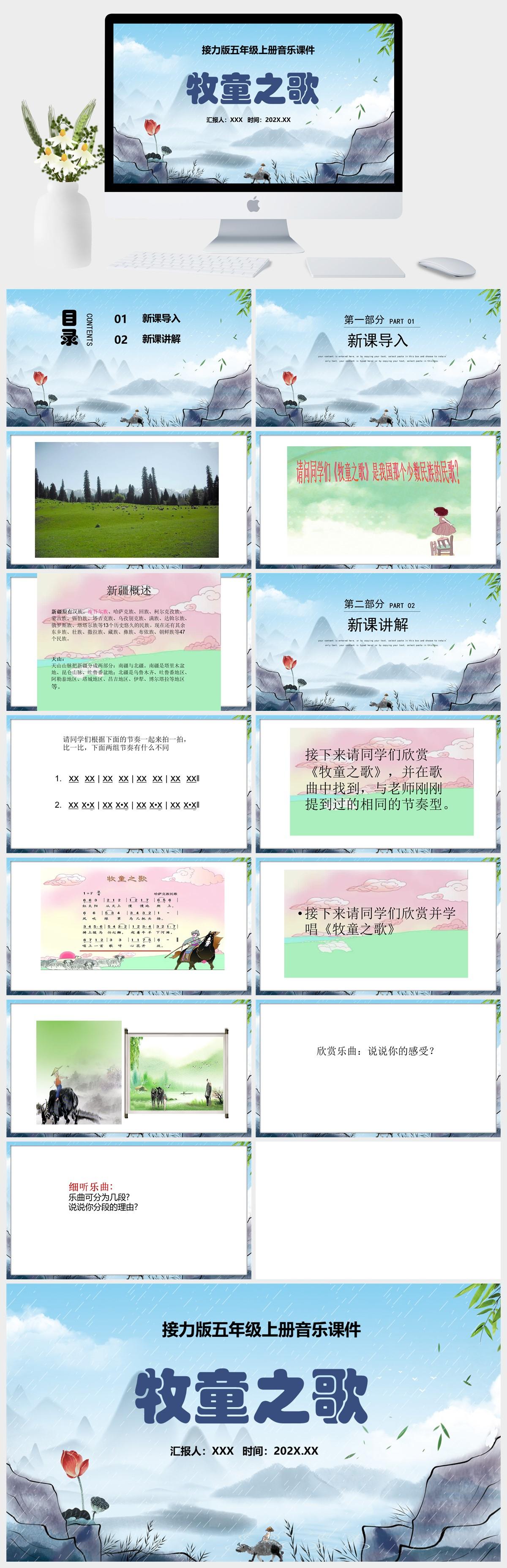 HKM2893-接力版五年级上册音乐《牧童之歌》课件PPT模板