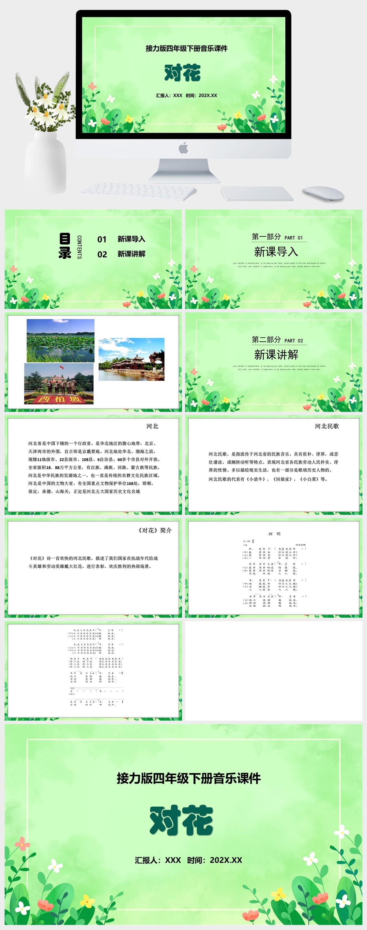 HKM2908-接力版四年级下册音乐《对花》课件PPT模板