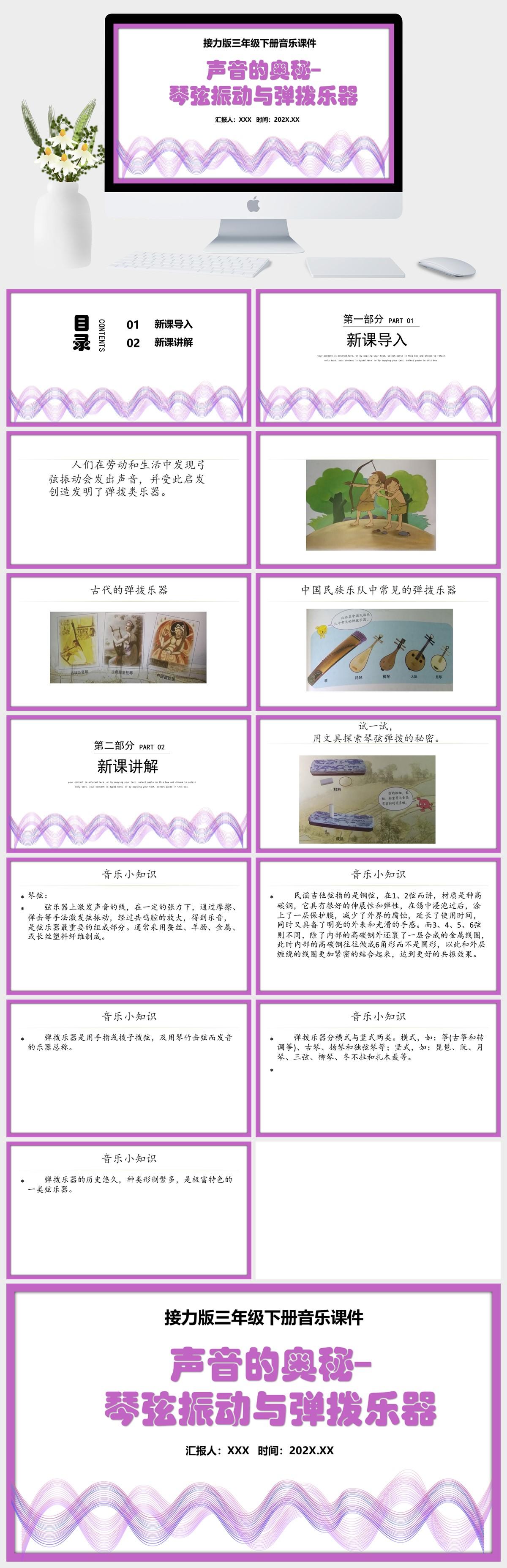 HKM2960-接力版三年级下册音乐 《声音的奥秘–琴弦振动与弹拨乐器》课件PPT模板