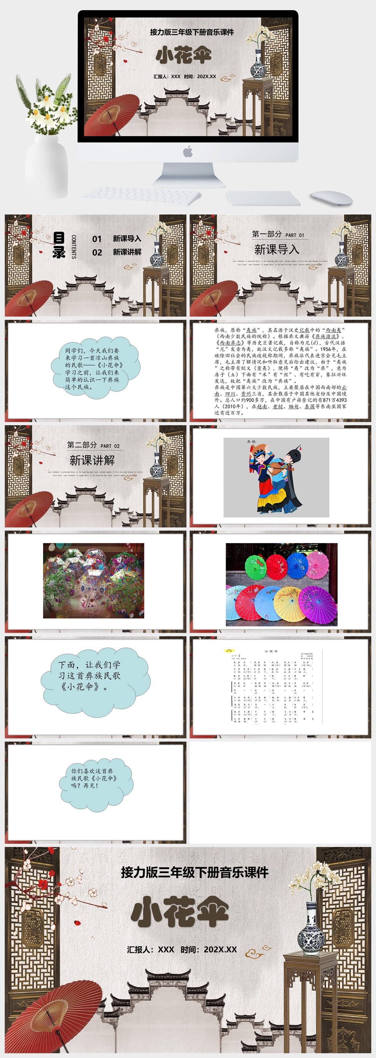 HKM2961-接力版三年级下册音乐 歌曲《小花伞》课件PPT模板