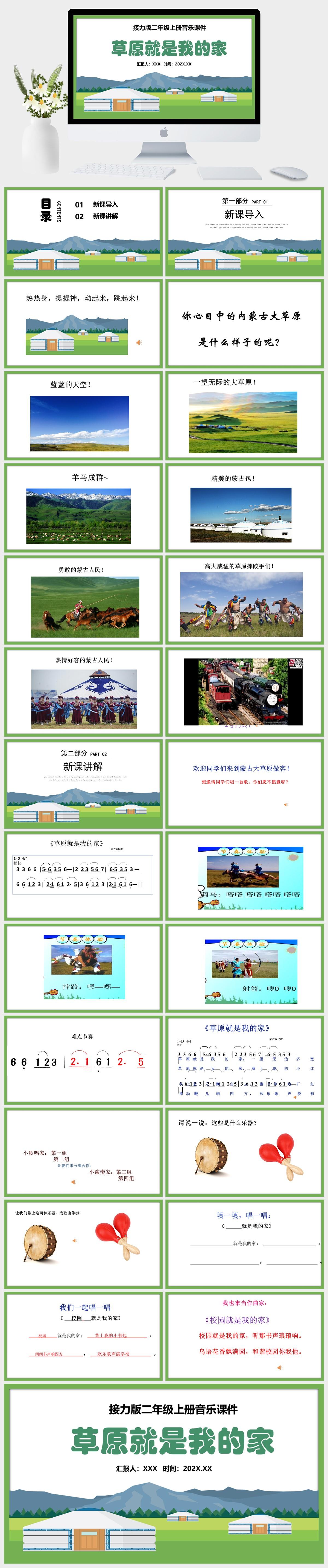 HKM3044-接力版二年级上册音乐 《草原就是我的家》课件PPT模板