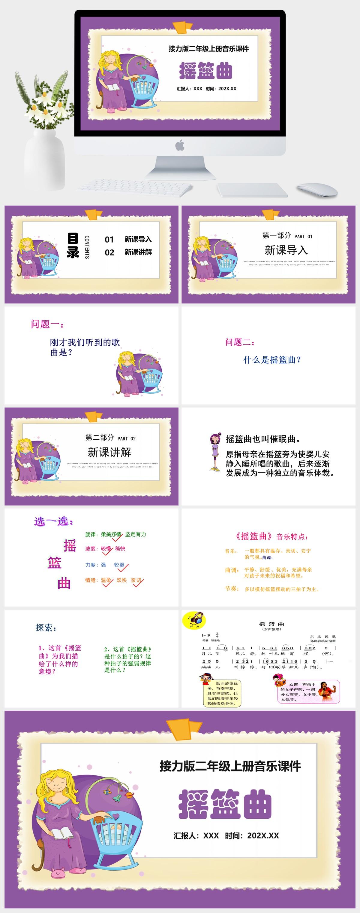 HKM3072-接力版二年级上册音乐 《摇篮曲》课件PPT模板