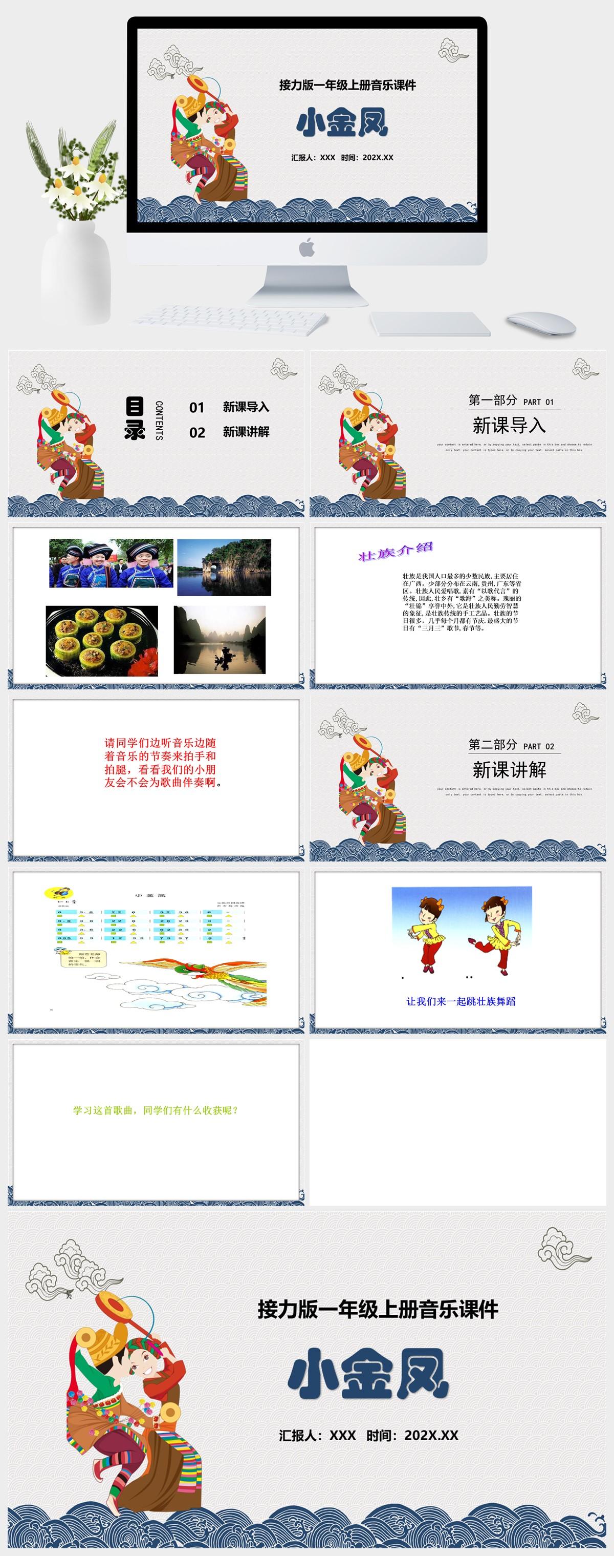 HKM3128-接力版一年级上册音乐《小金凤》课件PPT模板