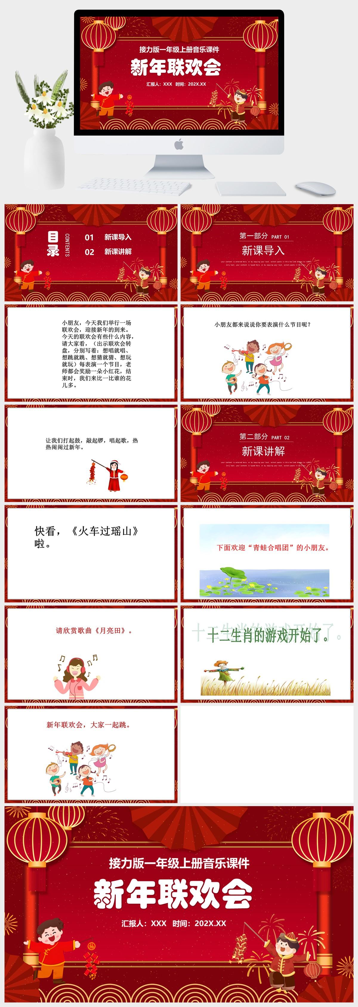 HKM3141-接力版一年级上册音乐《新年联欢会》课件PPT模板