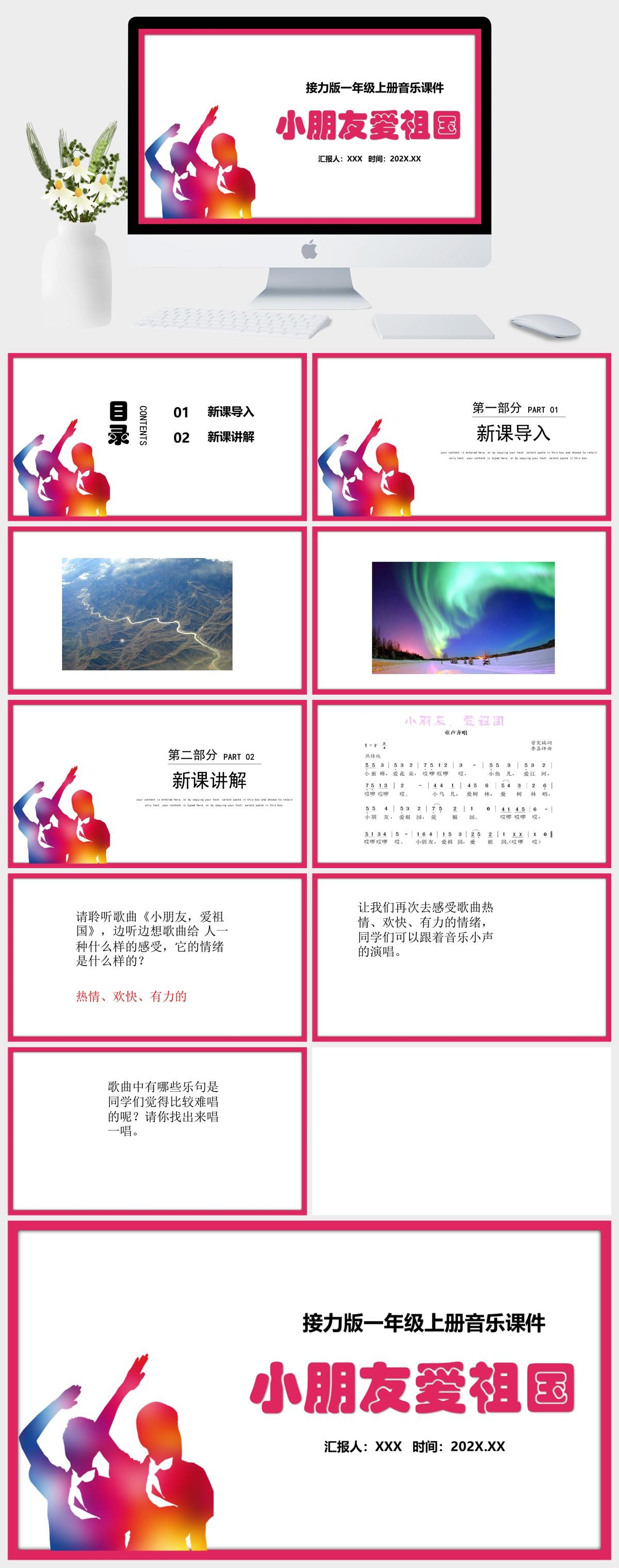 HKM3147-党政风—接力版一年级上册音乐《小朋友爱祖国》课件PPT模板