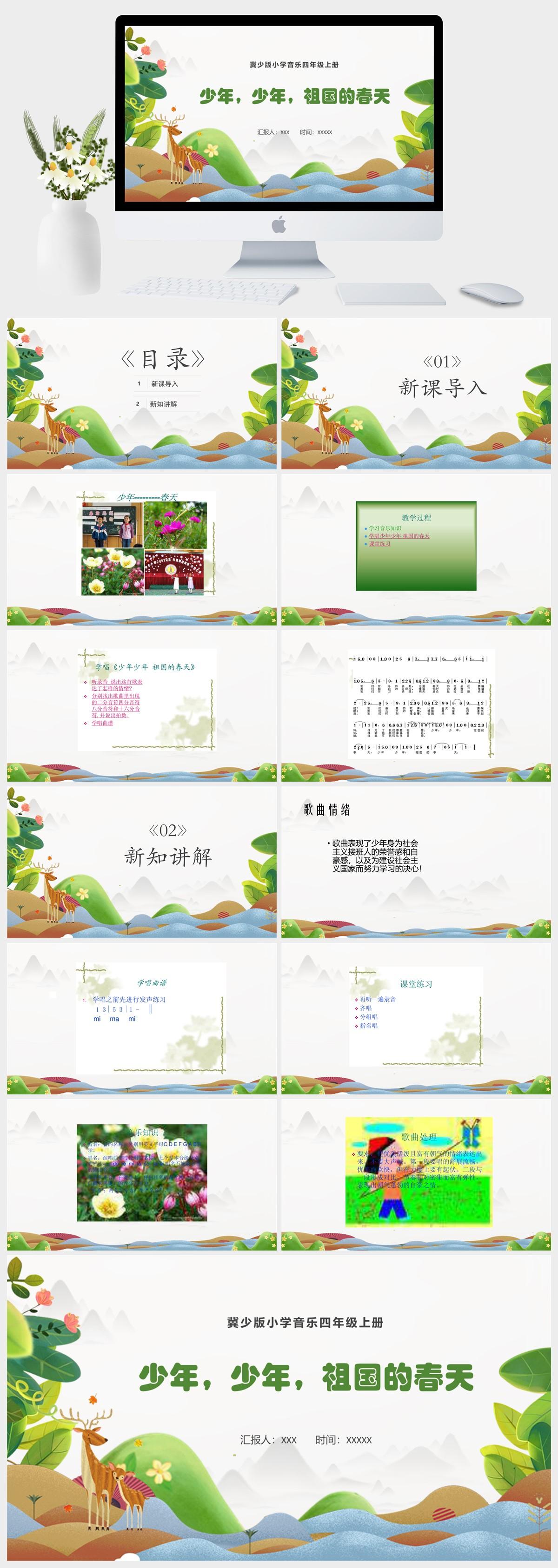 HKM3200-冀少版小学音乐四年级上册少年,少年,祖国的春天PPT模板
