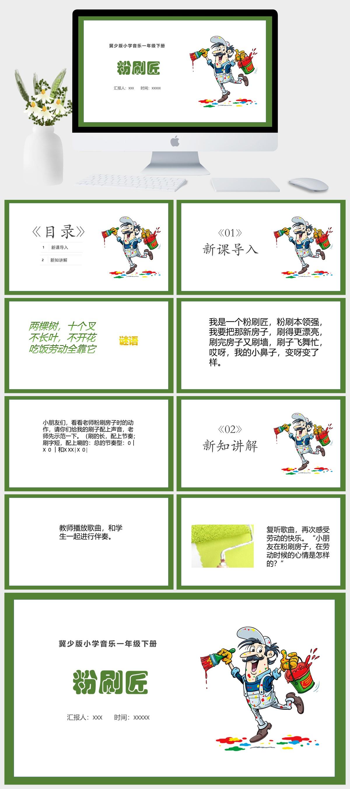 HKM3336-冀少版小学音乐一年级下册粉刷匠PPT模板