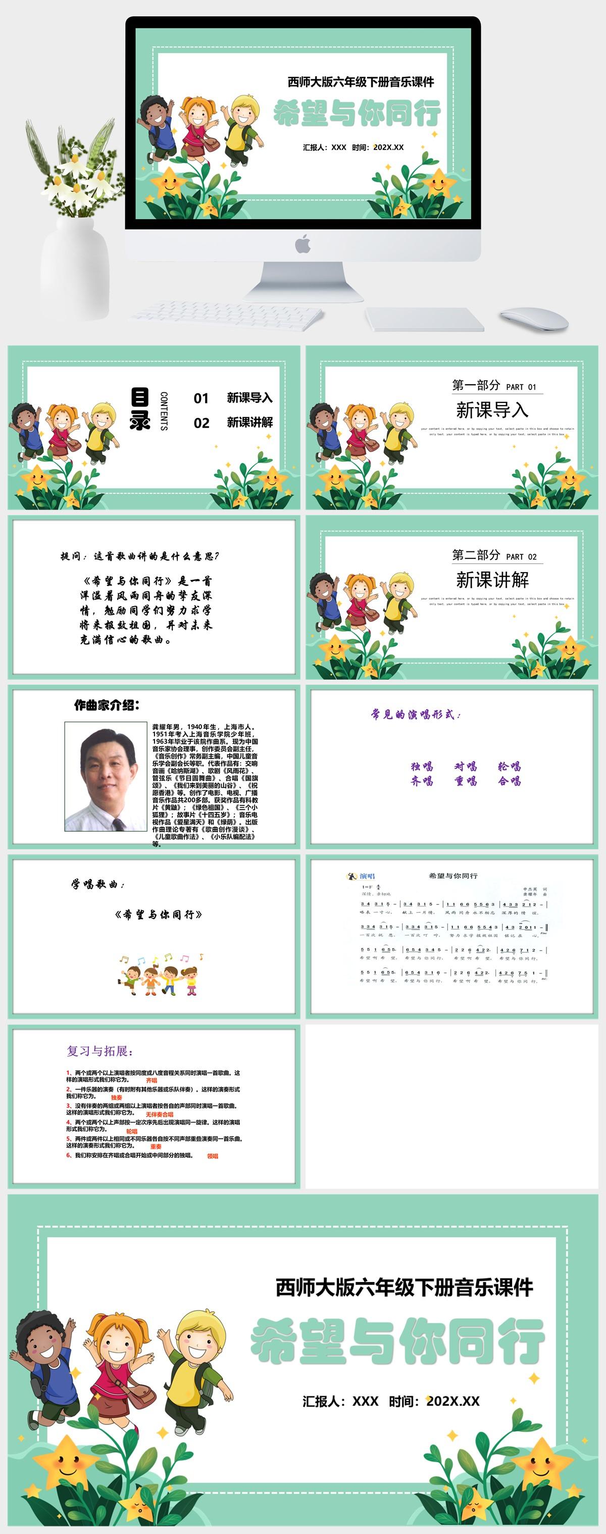 HKM3384-西师大版六年级下册音乐《希望与你同行》 课件PPT模板