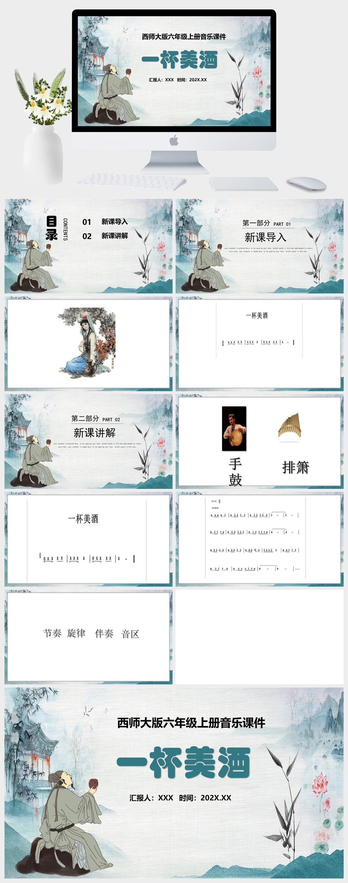 HKM3406-西师大版六年级上册音乐《一杯美酒》课件PPT模板