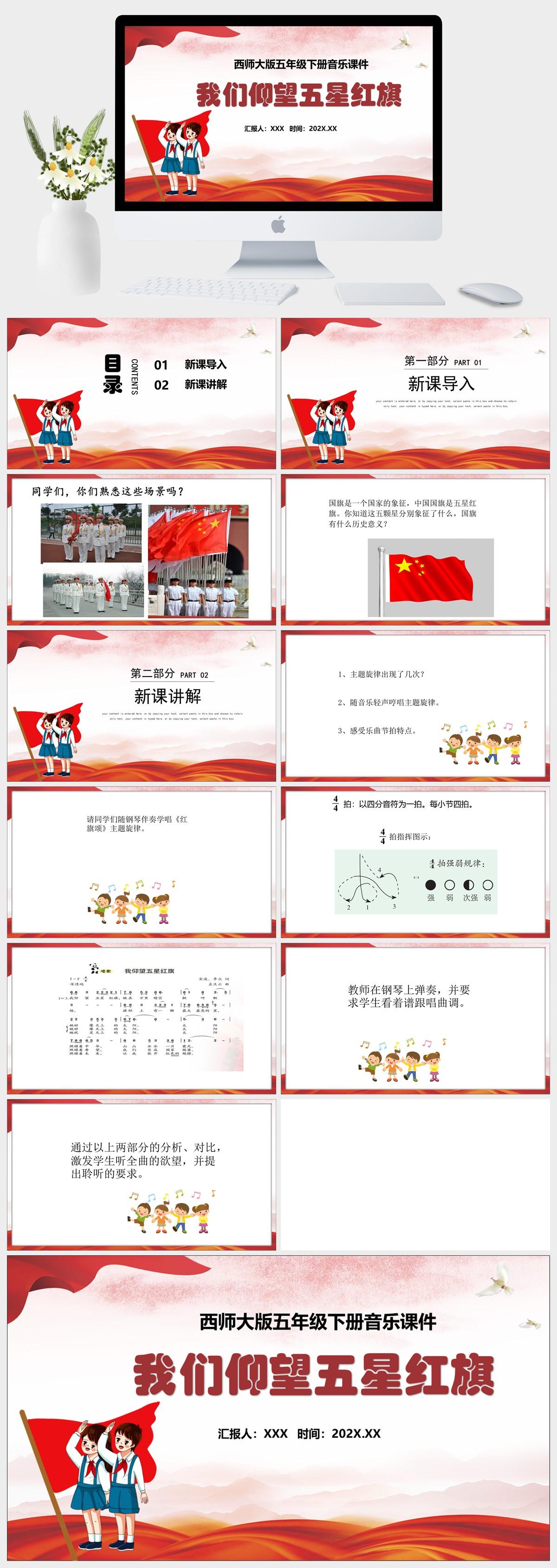 HKM3441-党政风—西师大版五年级下册音乐《我们仰望五星红旗》课件PPT模板