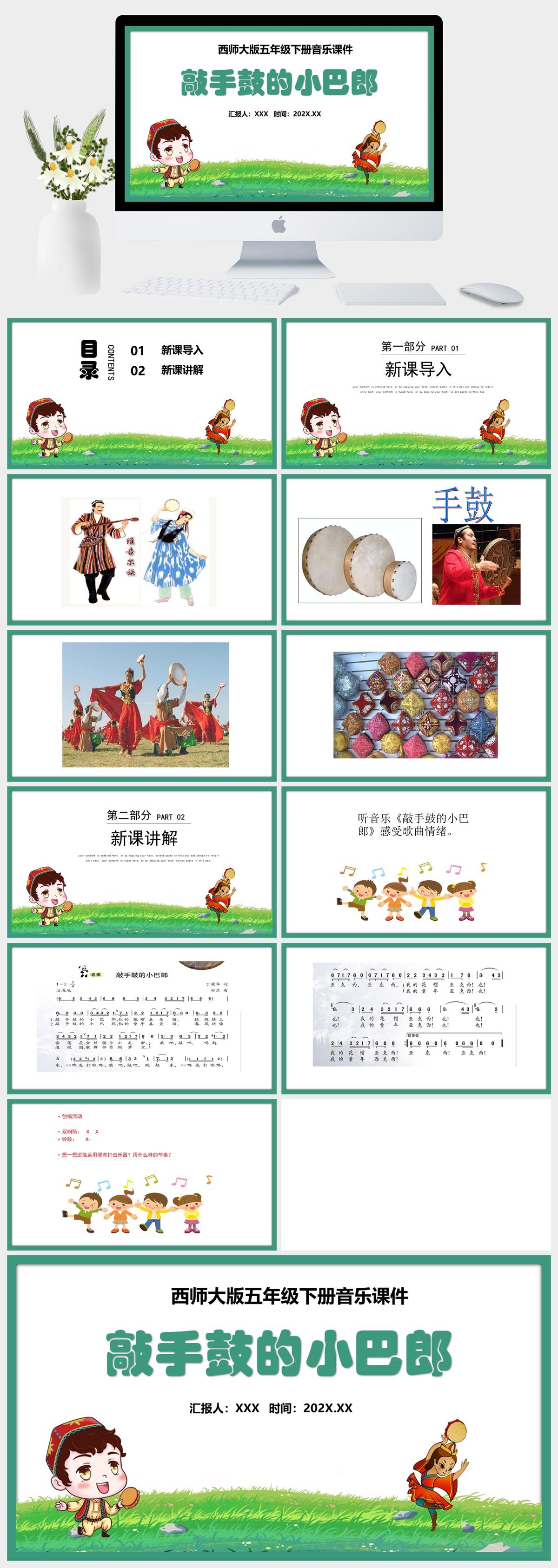 HKM3449-西师大版五年级下册音乐《敲手鼓的小巴郎》课件PPT模板