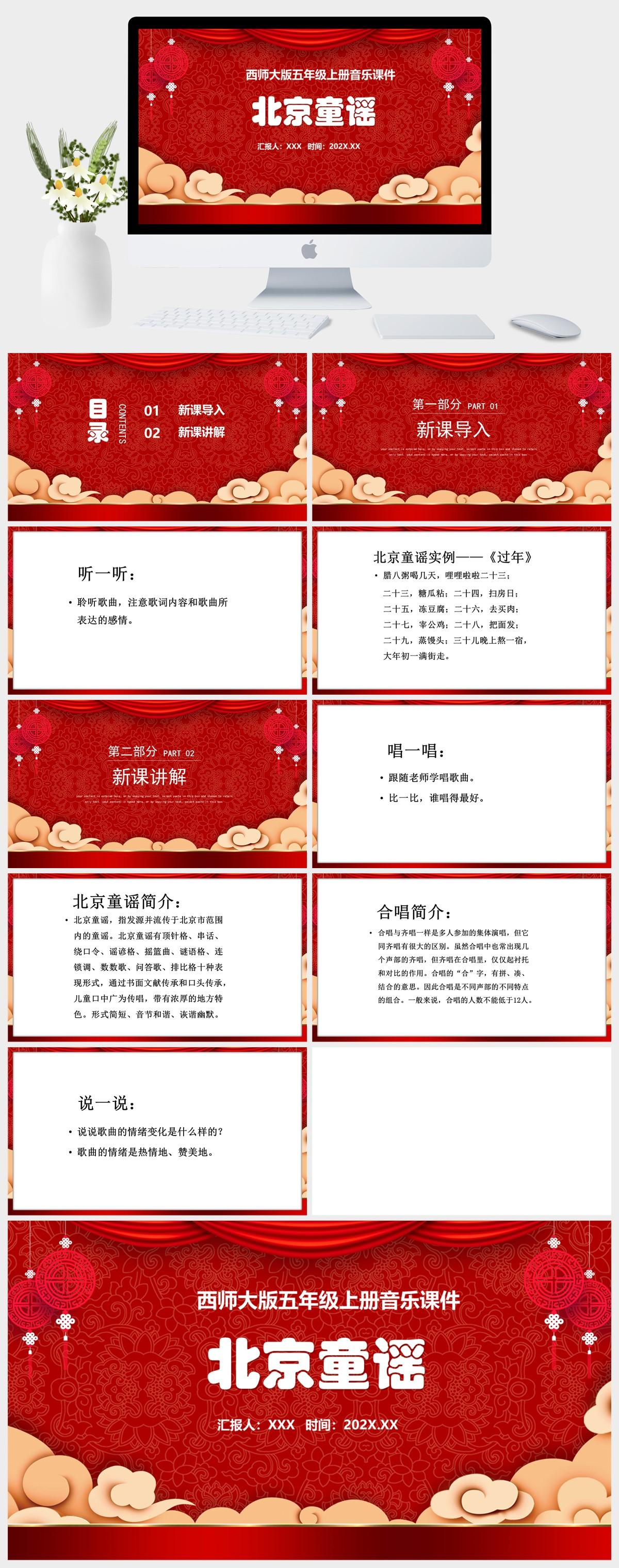 HKM3468-西师大版五年级上册音乐《北京童谣》课件PPT模板