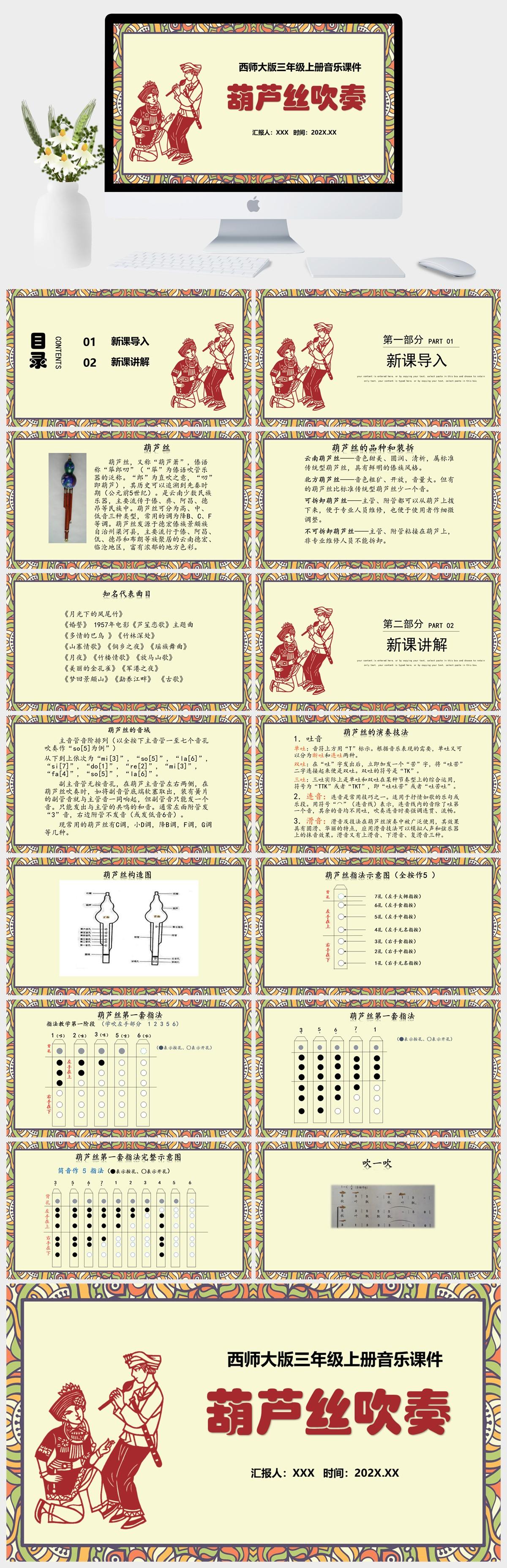 HKM3586-西师大版三年级上册音乐《葫芦丝吹奏》课件PPT模板