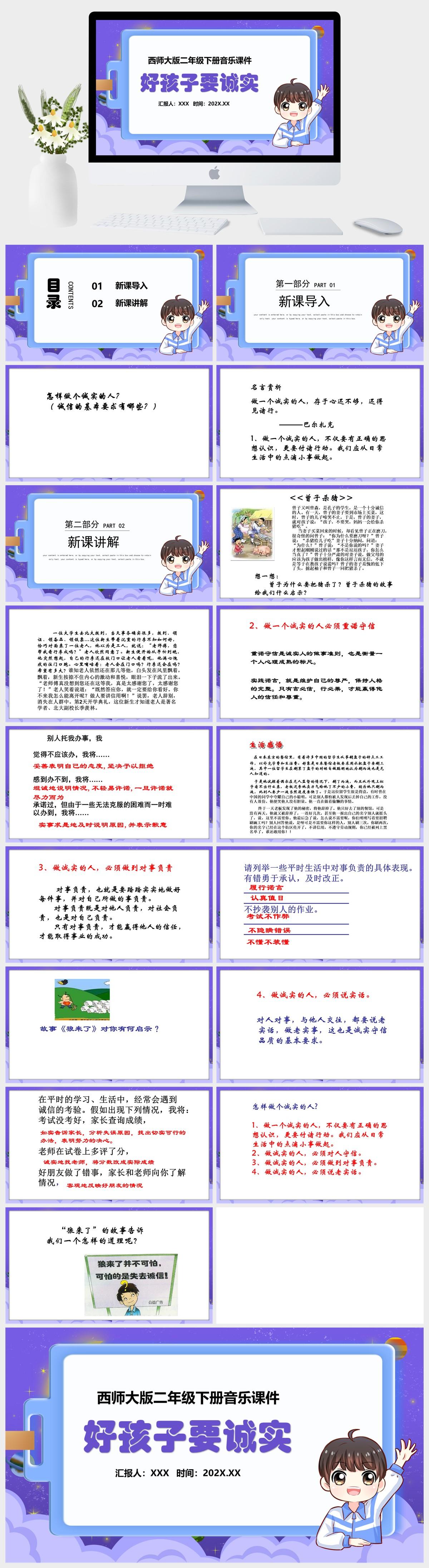 HKM3642-西师大版二年级下册音乐《好孩子要诚实》课件PPT模板