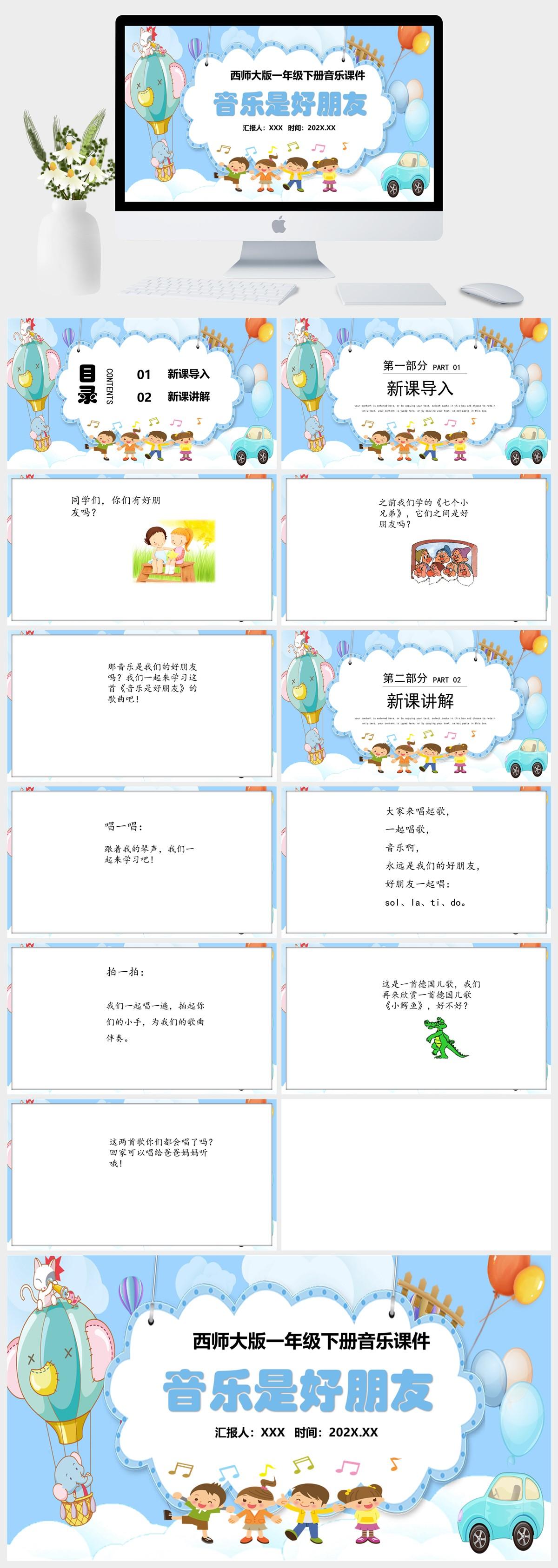 HKM3699-西师大版一年级下册音乐《音乐是好朋友》课件PPT模板