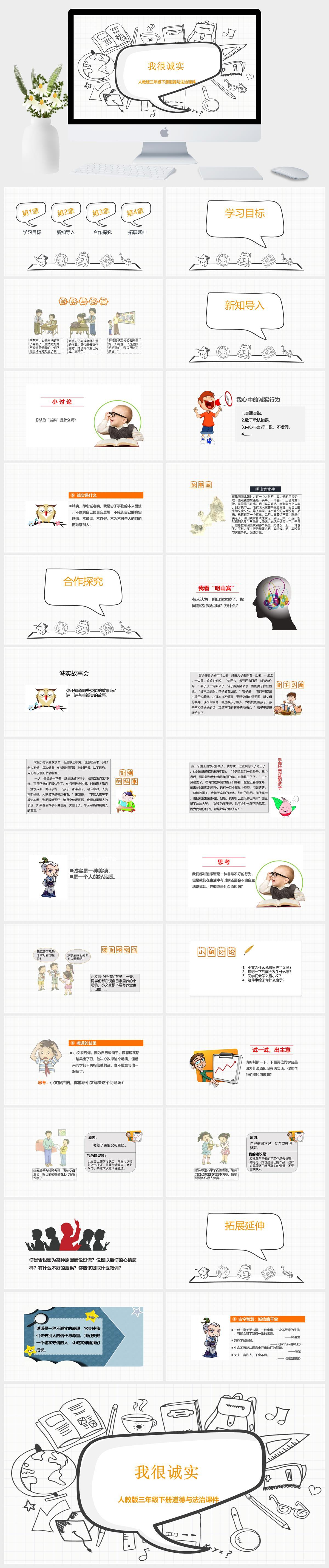 HKDF309-人教版三年级下册道德与法治《我很诚实》 课件PPT模板-好课件