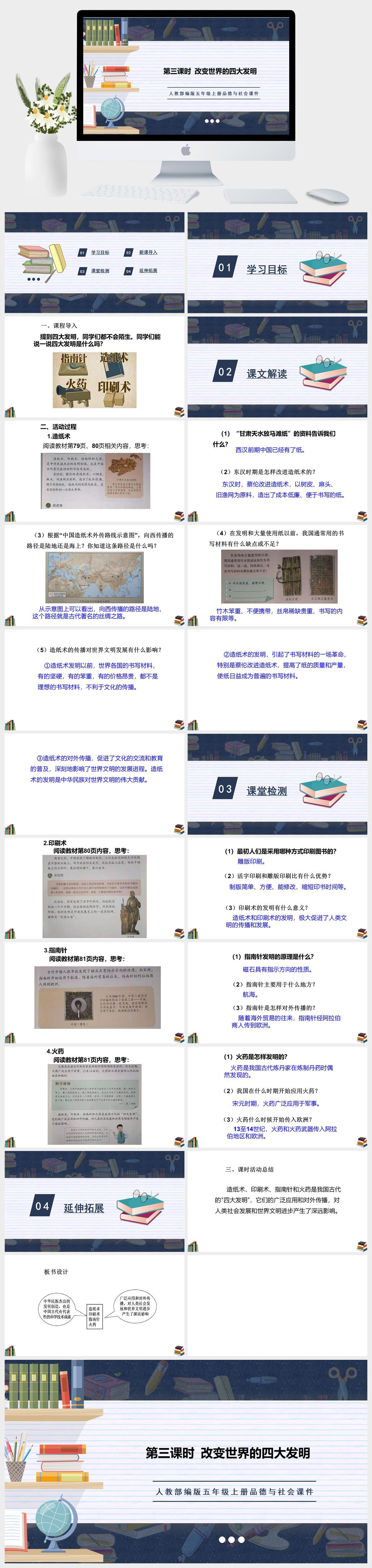HKDF885-人教部编版五年级上册品德与社会课件第9课第三课时改变世界的四大发明PPT模板-好课件