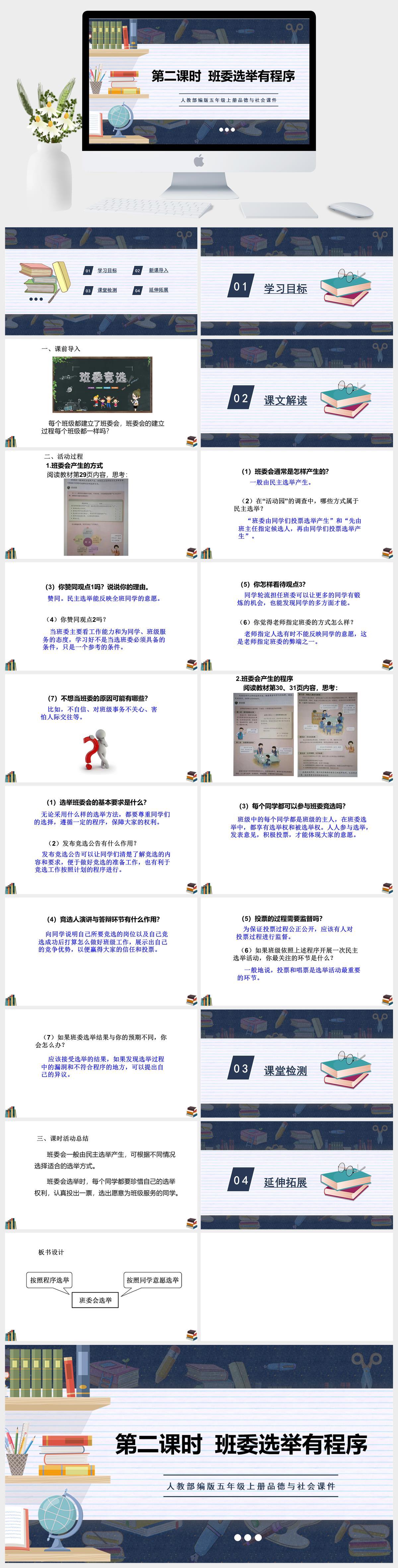 HKDF895-人教部编版五年级上册品德与社会课件第4课第二课时班委选举有程序PPT模板-好课件