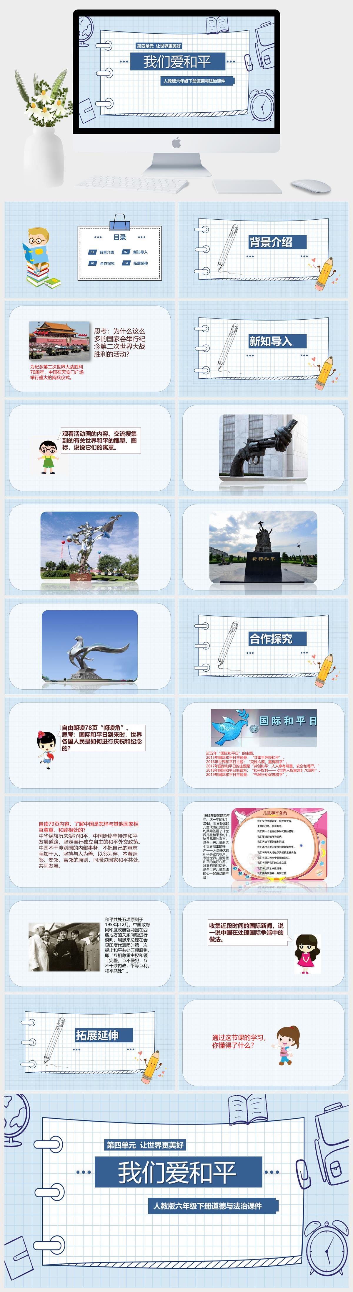 HKDF1605-人教版六年级下册道德与法治《我们爱和 平》课件PPT模板-好课件