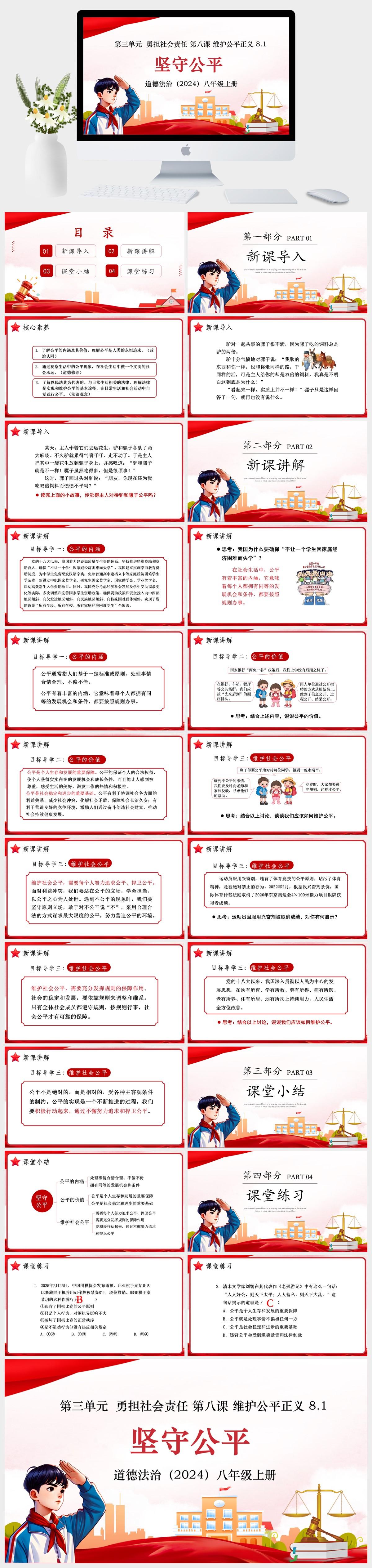 HKDF1695-道德法治(2024)八年级上册第三单元 勇担社会责任 第八课 维护公平正义 8.1 坚守公平课件PPT模板-好课件