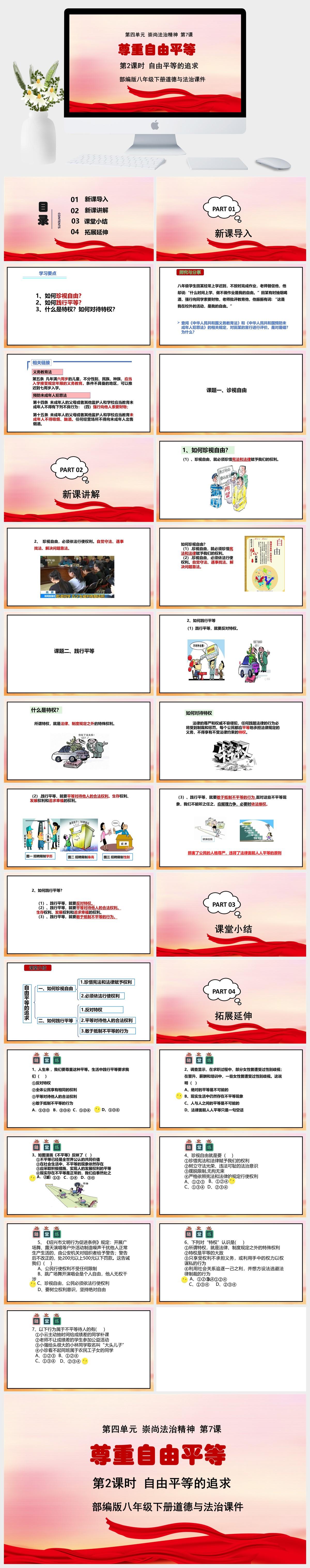 HKDF1733-党政风–部编版八年级下册道德与法治《第四单元第7课 尊重自由平等第2课时 自由平等的追求》课件PPT模板-好课件