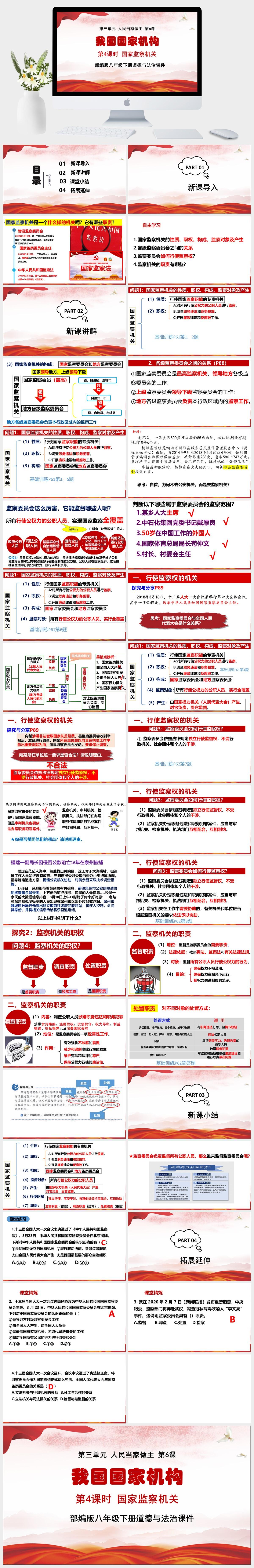 HKDF1741-党政风–部编版八年级下册道德与法治《第三单元第6课 我国国家机构第4课时 国家监察机关》课件PPT模板-好课件