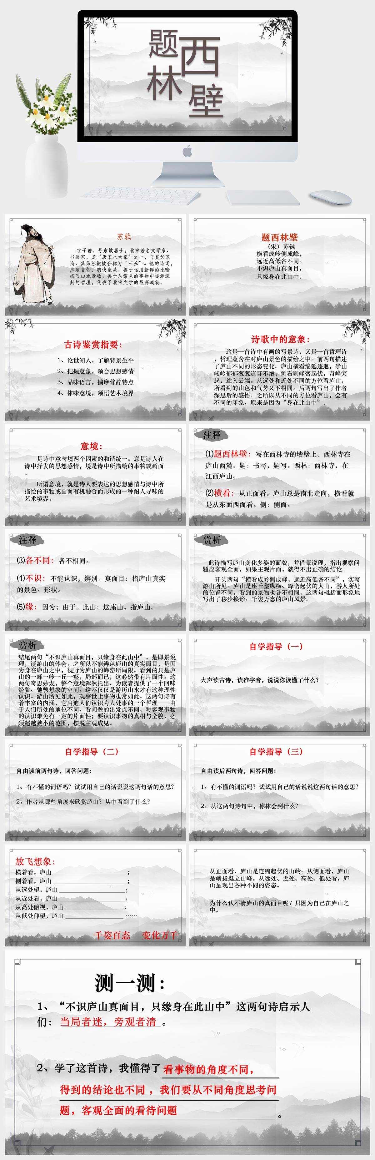 HKYW3414-人教版小学语文四年级上册课件题西林壁PPT模板成品课件PPT