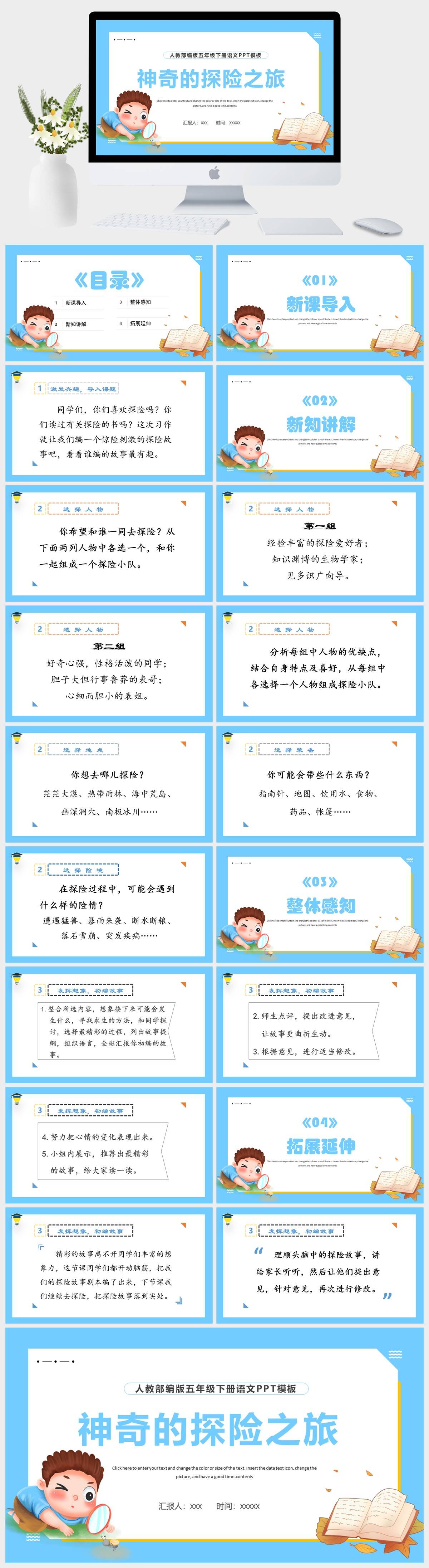 HKYW4435-人教部编版五年级下册语文神奇的探险之旅PPT模板成品课件PPT